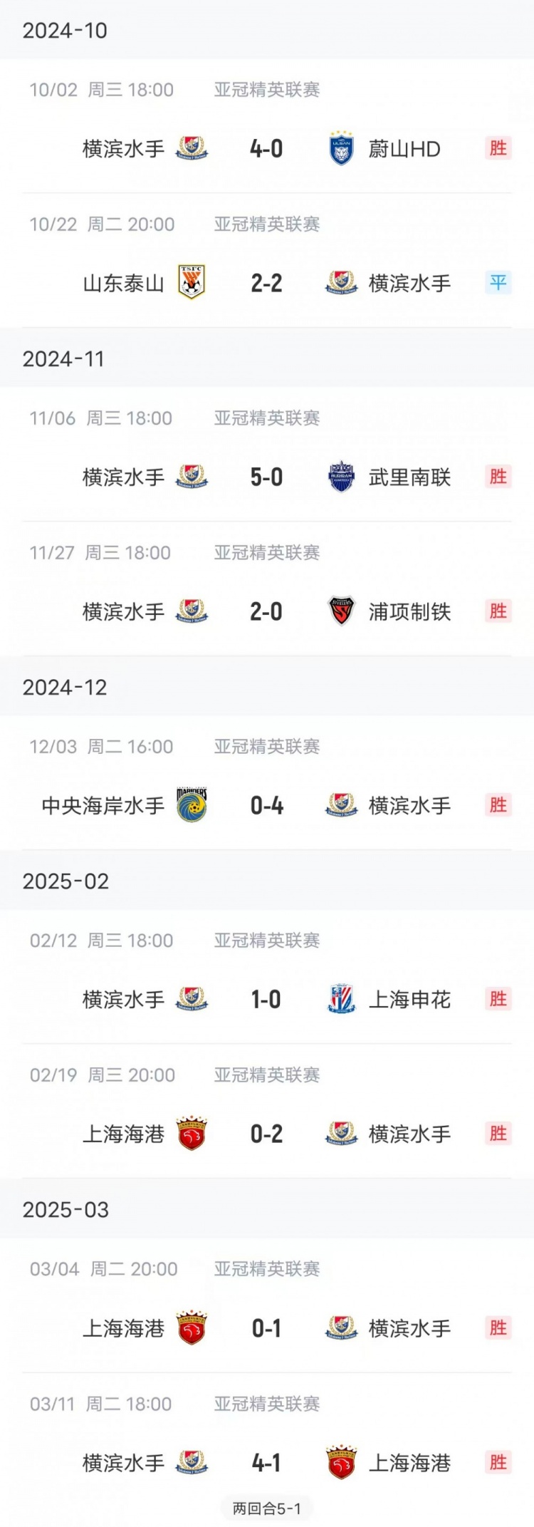 而在亞冠賽場,橫濱水手則換了“畫風”,自從去年9月17號不敵光州之后,橫濱已經在亞冠連續9場不敗,最近7場更是取得全勝。