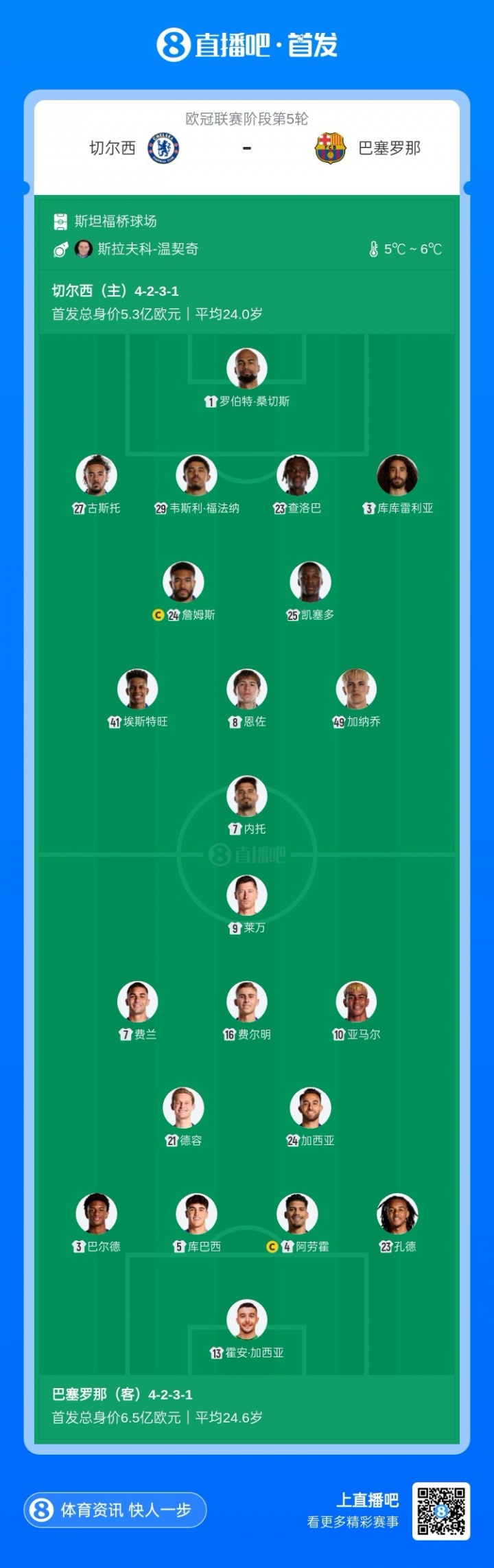 2025-11-26 08:10:33老對手!切爾西vs巴薩首發(fā):埃斯特旺pk亞馬爾,加納喬、萊萬出戰(zhàn)